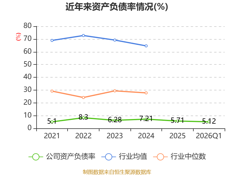 负债重大变化方面,截至2026年一季度末,公司应付职工薪酬较上年末减少68.46%,占公司总资产比重下降0.28个百分点;应付票据及应付账款较上年末减少11.84%,占公司总资产比重下降0.21个百分点;应交税费较上年末减少84.3%,占公司总资产比重下降0.11个百分点;其他应付款(含利息和股利)较上年末增加21.86%,占公司总资产比重上升0.08个百分点。