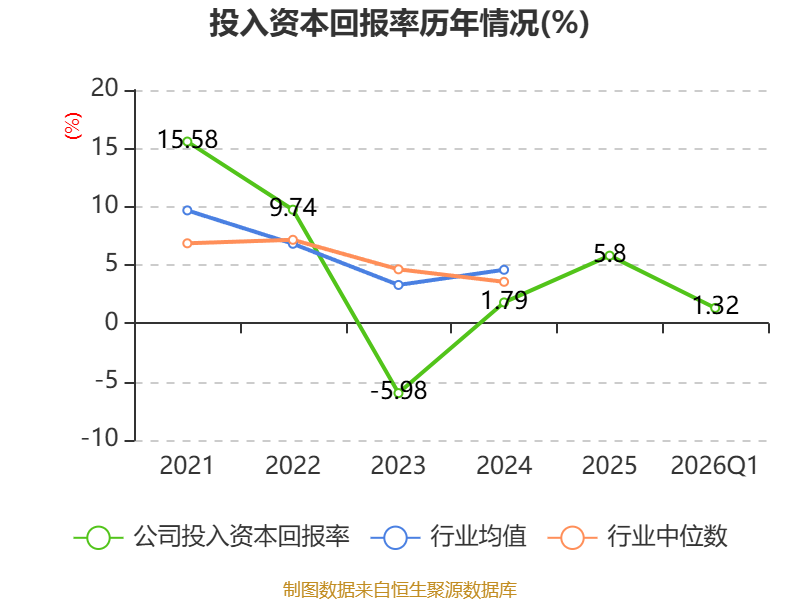 盈利能力方面, 2026年一季度公司加权平均净资产收益率为1.33%,同比下降0.25个百分点。公司2026年第一季度投入资本回报率为1.32%,较上年同期下降0.27个百分点。
