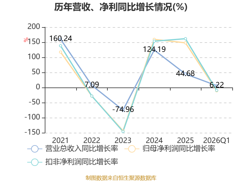 资产重大变化方面,截至2026年一季度末,公司货币资金较上年末增加17.27%,占公司总资产比重上升2.75个百分点;在建工程合计较上年末减少42.09%,占公司总资产比重下降2.37个百分点;交易性金融资产合计较上年末减少6.35%,占公司总资产比重下降1.42个百分点;应收款项融资较上年末增加51.75%,占公司总资产比重上升1.3个百分点。