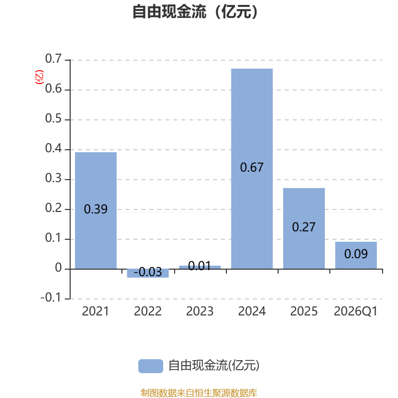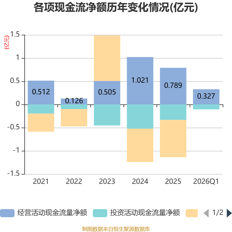 截至2026年一季度末,公司经营活动现金流净额为3273.82万元,同比增加3912.83万元;筹资活动现金流净额0元,同比增加785.74万元;投资活动现金流净额-1065.91万元,上年同期为-1259.61万元。