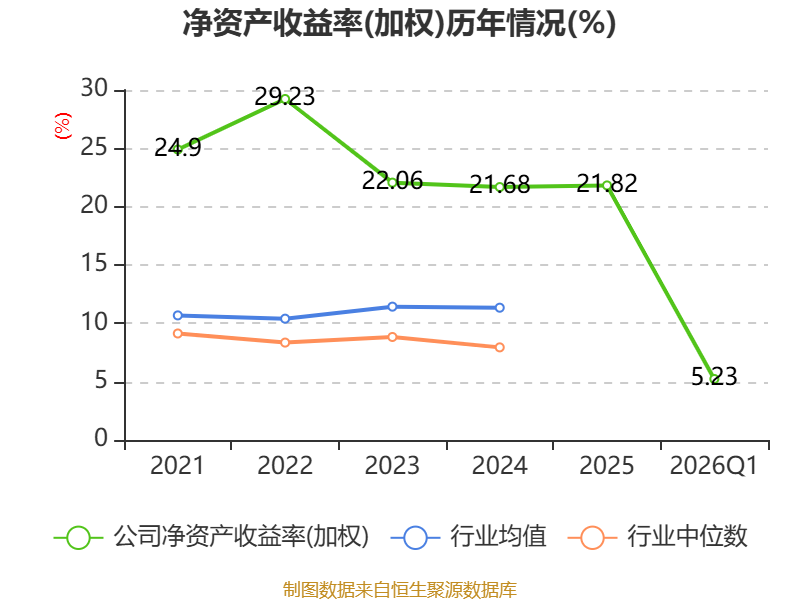 盈利能力方面, 2026年一季度公司加权平均净资产收益率为5.23%,同比上升0.08个百分点。公司2026年第一季度投入资本回报率为5.24%,较上年同期上升0.17个百分点。
