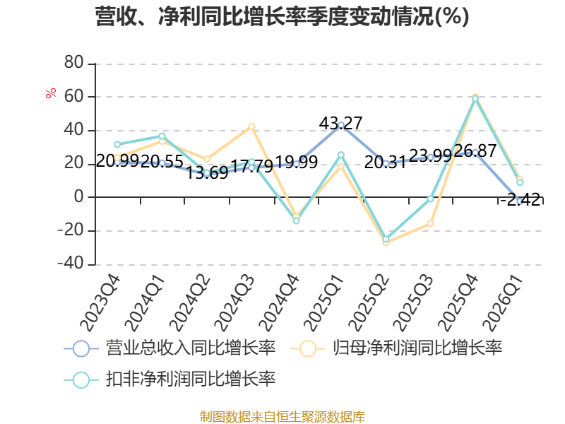 负债重大变化方面,截至2026年一季度末,公司应付票据及应付账款较上年末减少14.8%,占公司总资产比重下降2.13个百分点;应交税费较上年末减少60.52%,占公司总资产比重下降1.83个百分点;其他流动负债较上年末增加93.86%,占公司总资产比重上升0.94个百分点;其他应付款(含利息和股利)较上年末减少39.41%,占公司总资产比重下降0.82个百分点。