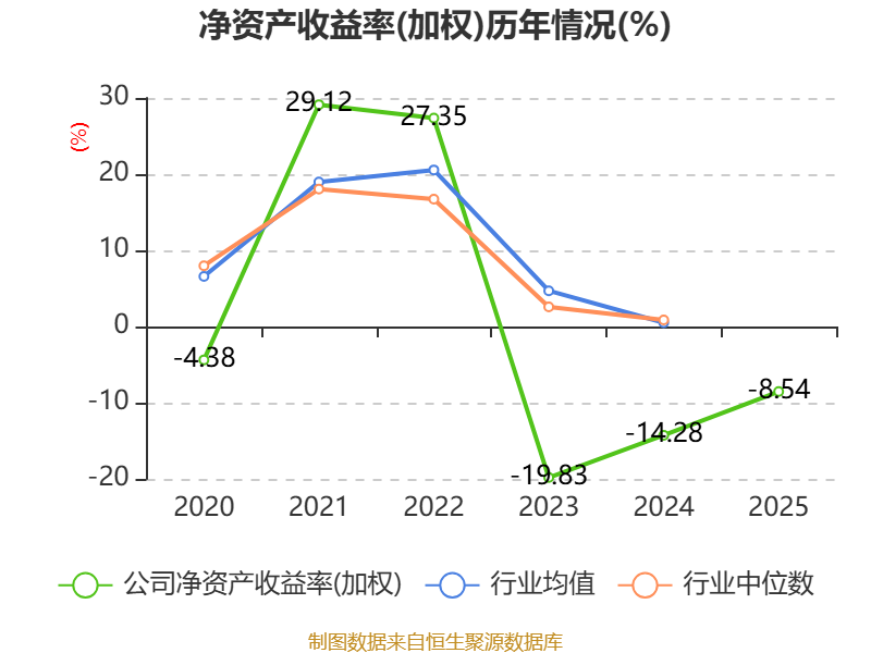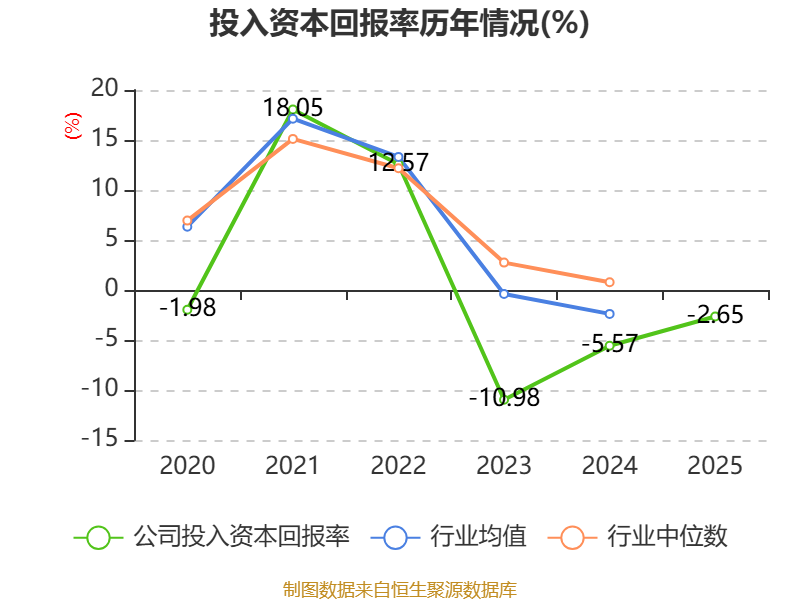 数据显示,2025年公司加权平均净资产收益率为-8.54%,较上年同期上升5.74个百分点。公司2025年投入资本回报率为-2.65%,较上年同期上升2.92个百分点。