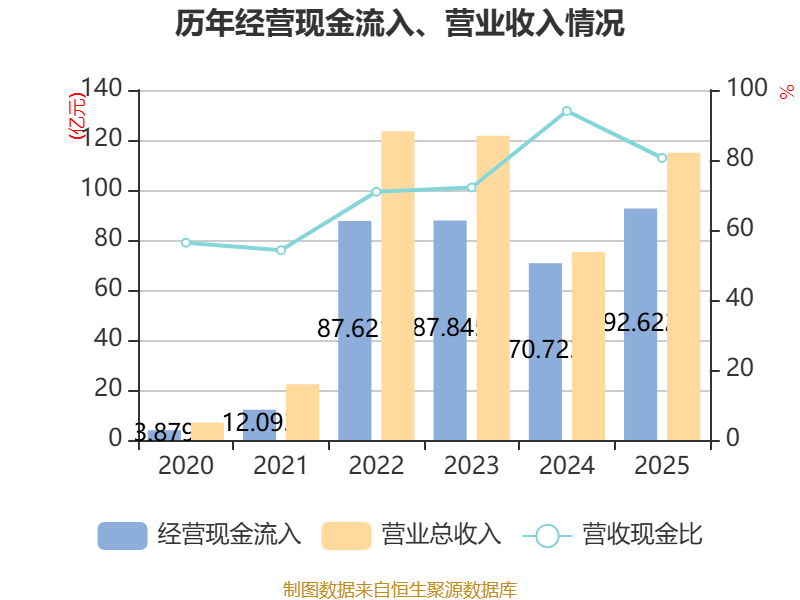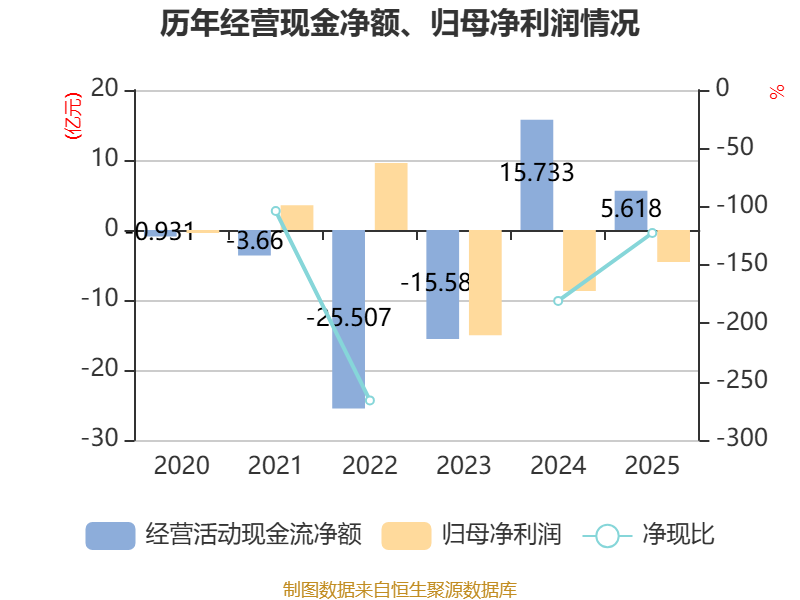 截至2025年,公司经营活动现金流净额为5.62亿元,同比下降64.29%;筹资活动现金流净额-1.64亿元,同比增加6.11亿元;投资活动现金流净额-9.78亿元,上年同期为-12.74亿元。