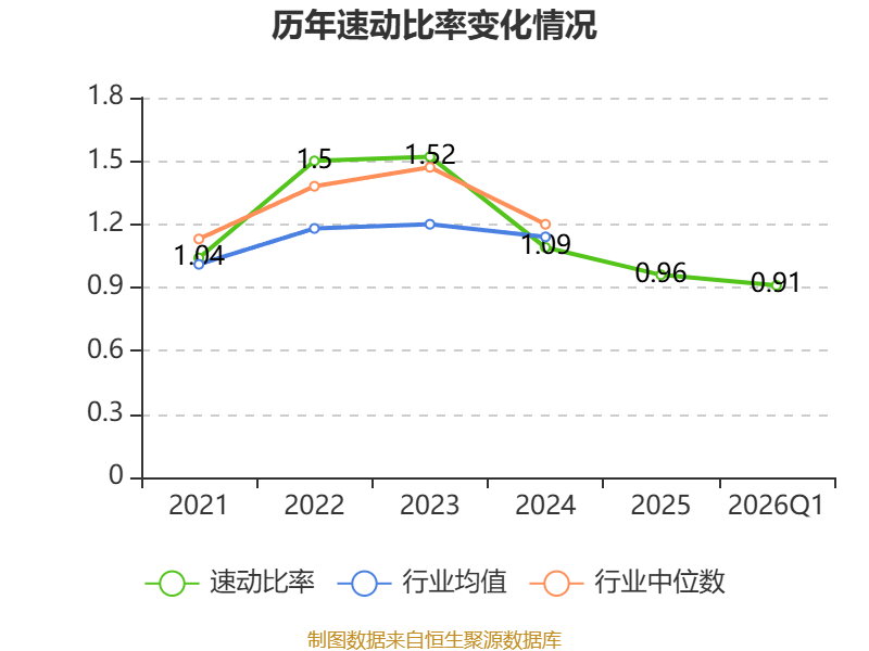 2026年第一季度,公司流动比率为1.22,速动比率为0.91。