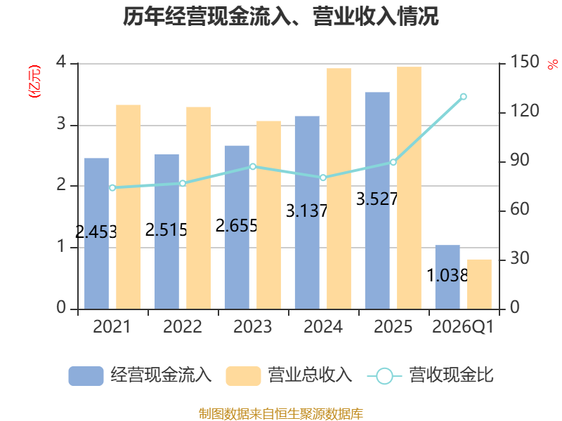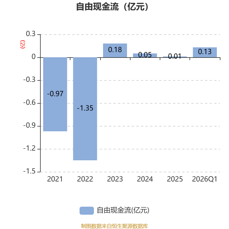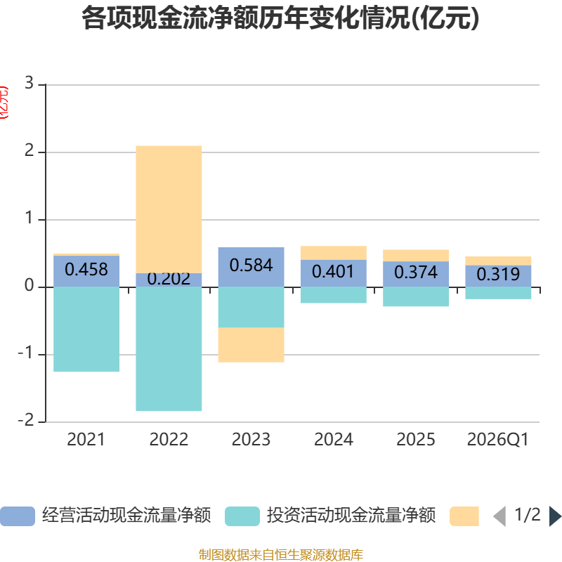 截至2026年一季度末,公司经营活动现金流净额为3193.83万元,同比增长3498.74%;筹资活动现金流净额1292.41万元,同比增加210.13万元;投资活动现金流净额-1859.49万元,上年同期为-3352.12万元。