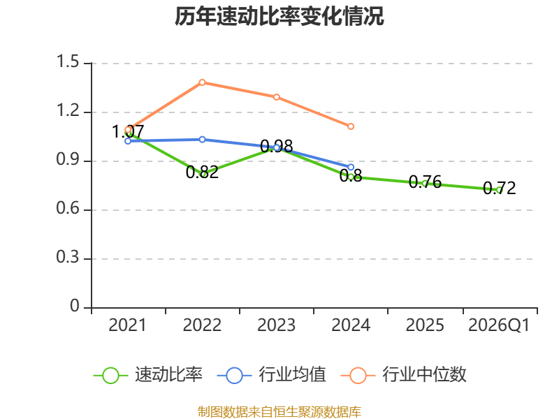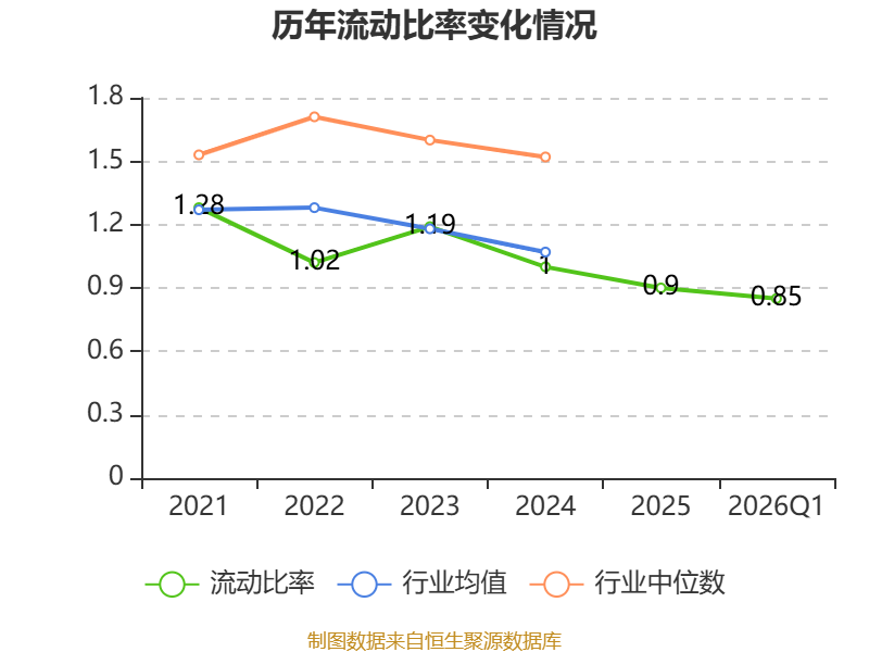 2026年第一季度,公司流动比率为0.85,速动比率为0.72。