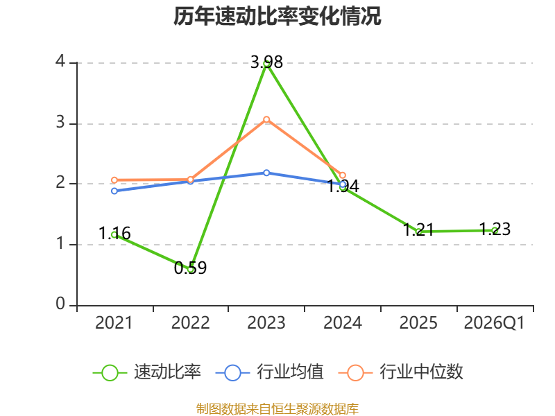 2026年第一季度,公司流动比率为1.39,速动比率为1.23。
