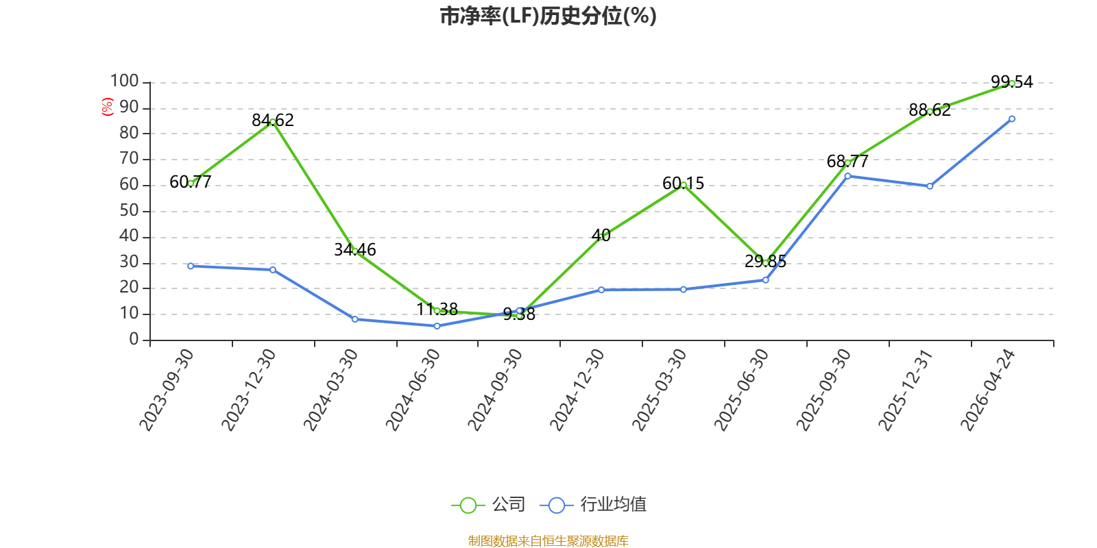 市盈率、市净率为负时,不显示当期分位数,会导致折线图中断。