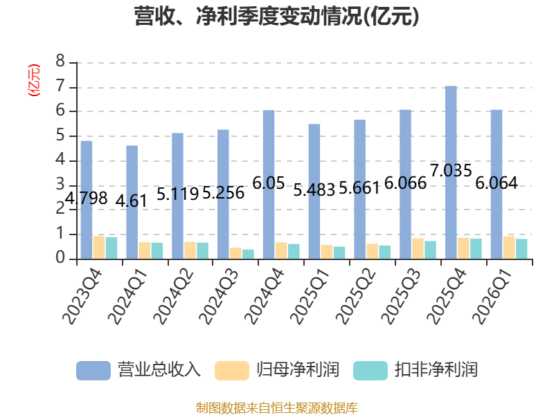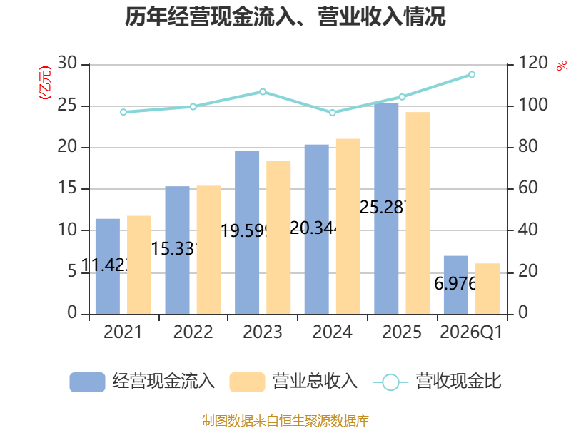 截至2026年一季度末,公司经营活动现金流净额为1.14亿元,同比下降26.97%;筹资活动现金流净额6851.26万元,同比减少1.3亿元;投资活动现金流净额-1.64亿元,上年同期为-3.29亿元。
