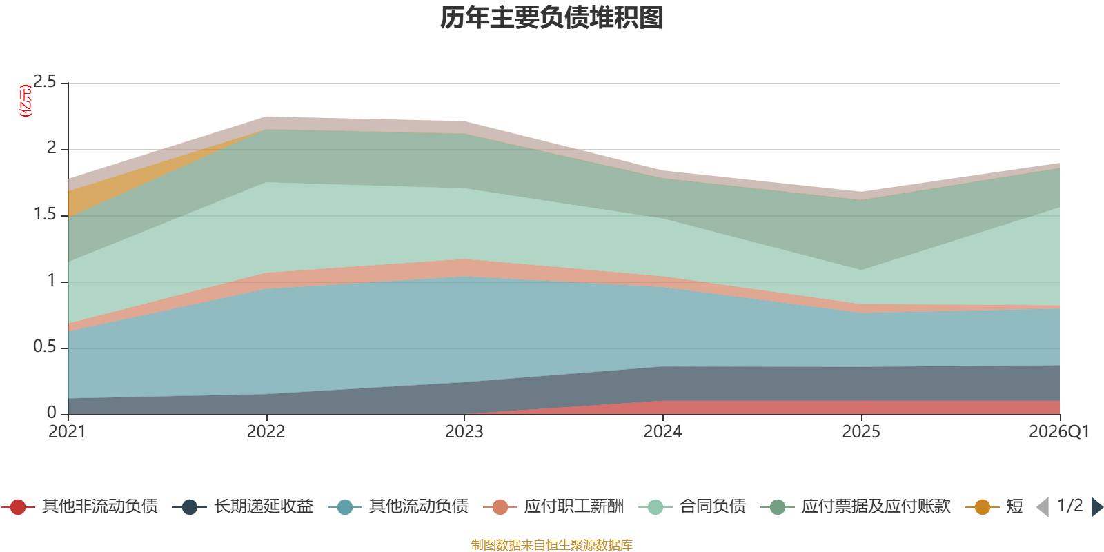 负债重大变化方面,截至2026年一季度末,公司合同负债较上年末增加188.89%,占公司总资产比重上升6.56个百分点;应付票据及应付账款较上年末减少44.17%,占公司总资产比重下降3.33个百分点;应付职工薪酬较上年末减少62.38%,占公司总资产比重下降0.59个百分点;其他应付款(含利息和股利)较上年末减少44.47%,占公司总资产比重下降0.31个百分点。