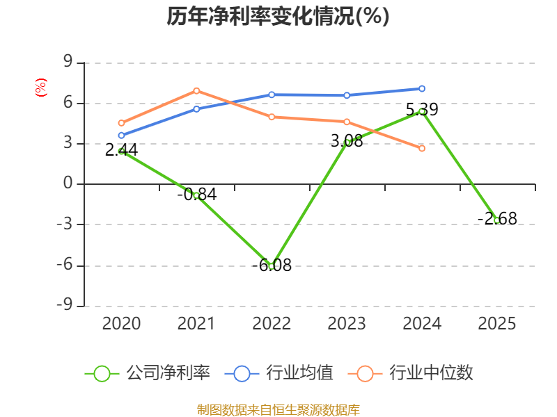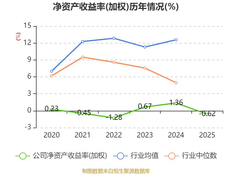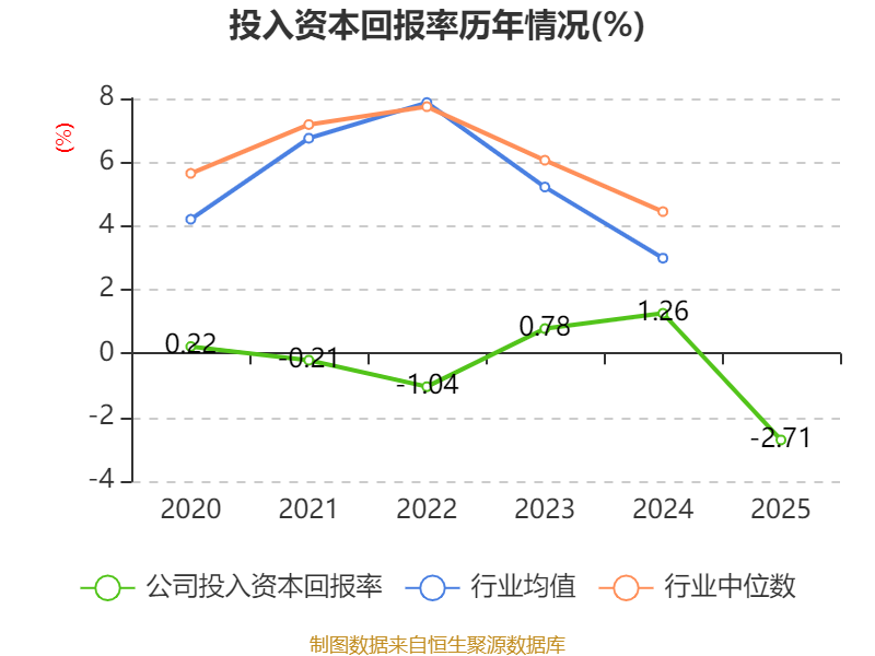 数据显示,2025年公司加权平均净资产收益率为-0.62%,较上年同期下降1.98个百分点。公司2025年投入资本回报率为-2.71%,较上年同期下降3.97个百分点。