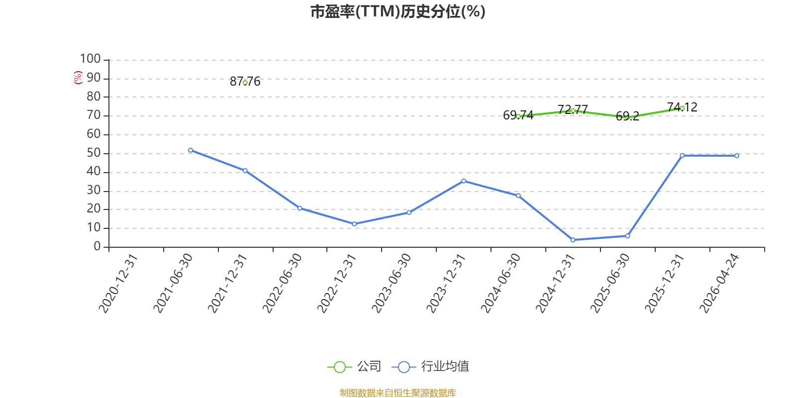 市盈率、市净率为负时,不显示当期分位数,会导致折线图中断。