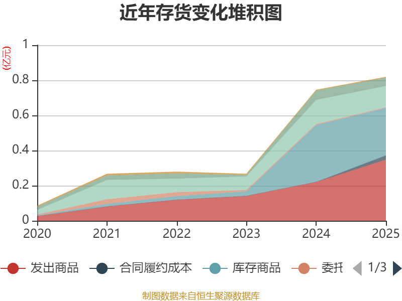 从存货变动来看,截至2025年末,公司存货账面价值为8200.11万元,占净资产的11.3%,较上年末增加737.4万元。其中,存货跌价准备为372.28万元,计提比例为4.34%。