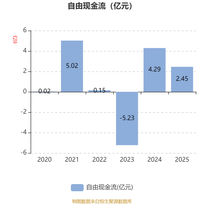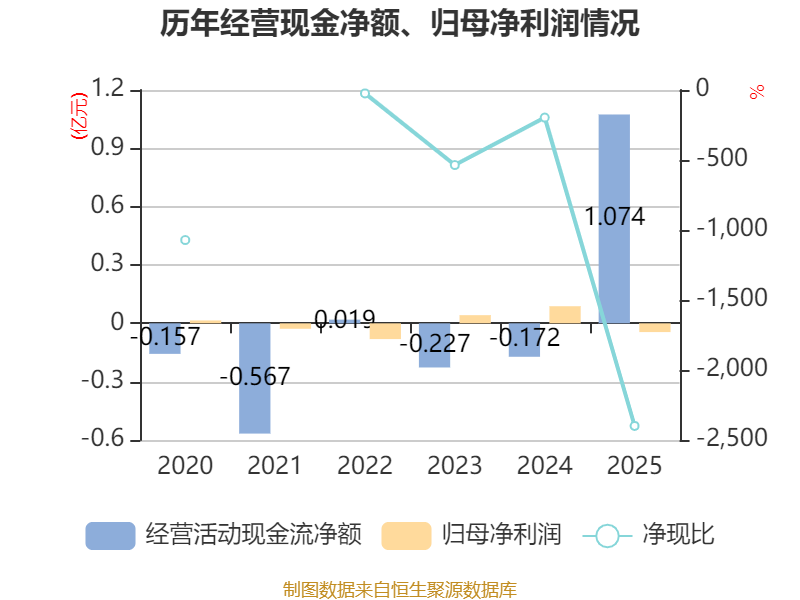 截至2025年,公司经营活动现金流净额为1.07亿元,同比增加1.25亿元;筹资活动现金流净额-300.18万元,同比减少1073.23万元;投资活动现金流净额-3390.98万元,上年同期为6741.54万元。