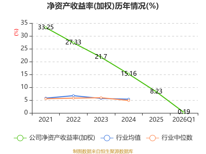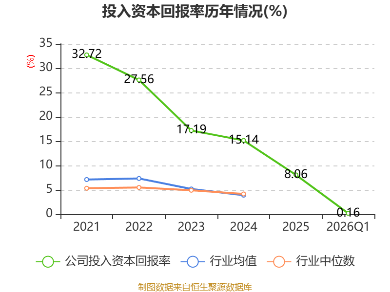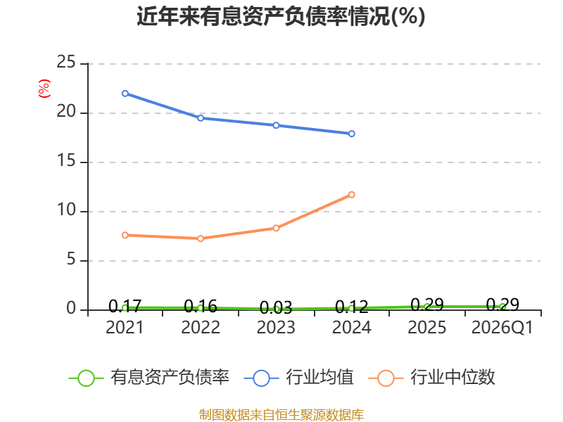 盈利能力方面, 2026年一季度公司加权平均净资产收益率为0.19%,同比下降1.2个百分点。公司2026年第一季度投入资本回报率为0.16%,较上年同期下降1.2个百分点。