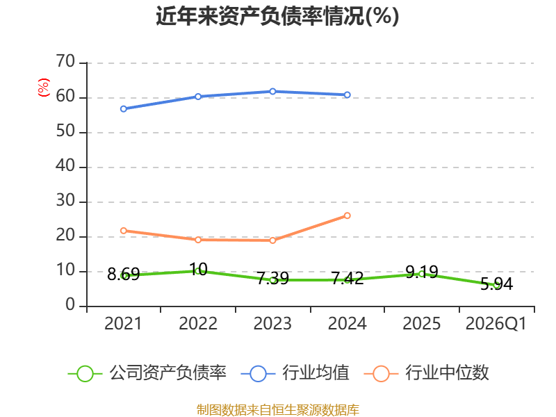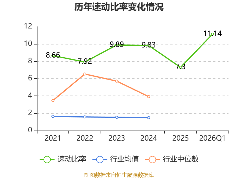 2026年第一季度,公司流动比率为13.1,速动比率为11.14。