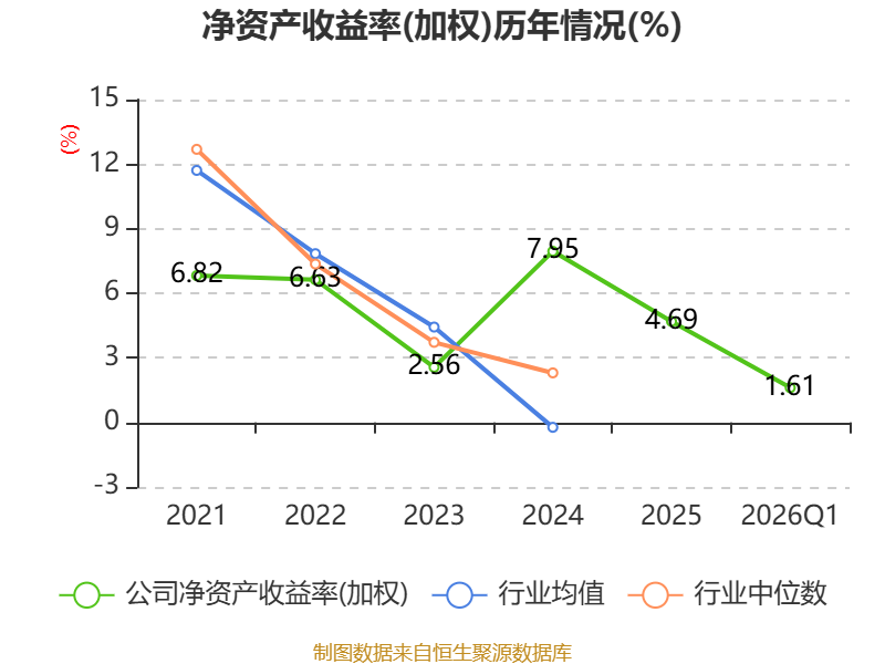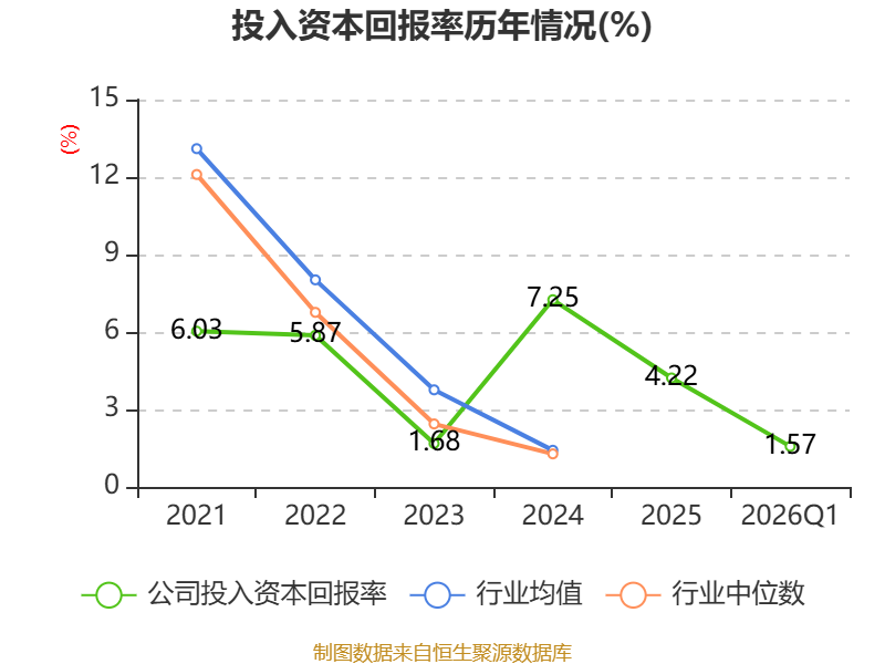盈利能力方面, 2026年一季度公司加权平均净资产收益率为1.61%,同比上升1.54个百分点。公司2026年第一季度投入资本回报率为1.57%,较上年同期上升1.56个百分点。