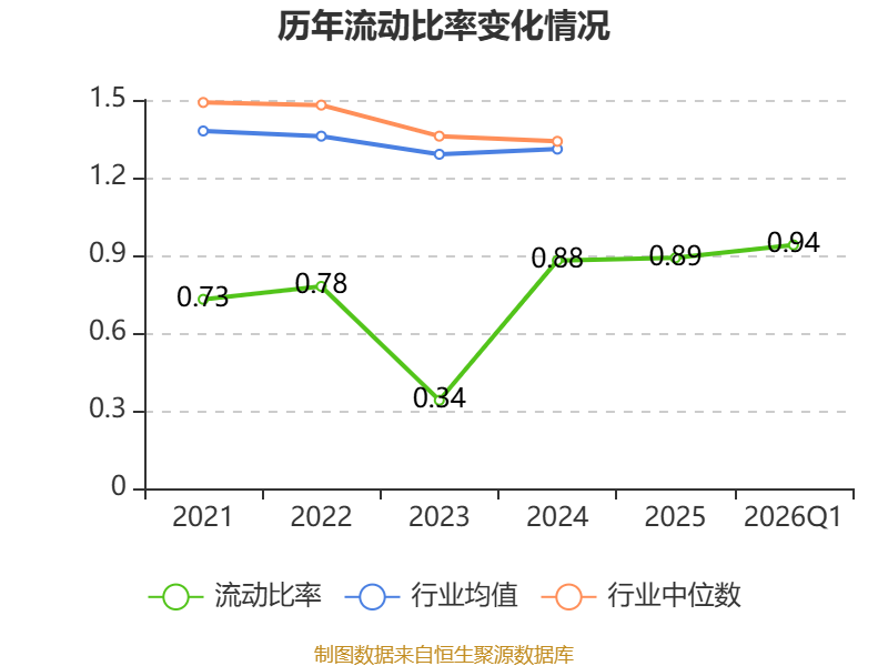 2026年第一季度,公司流动比率为0.94,速动比率为0.94。