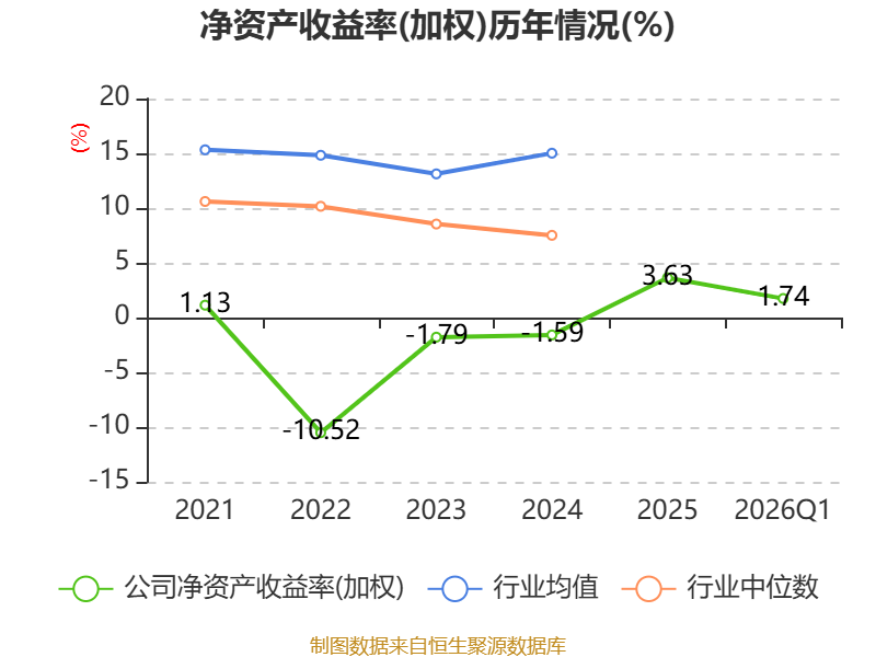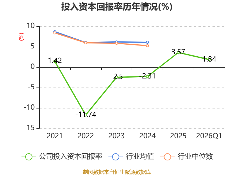 盈利能力方面, 2026年一季度公司加权平均净资产收益率为1.74%,同比下降0.02个百分点。公司2026年第一季度投入资本回报率为1.84%,较上年同期上升0.34个百分点。
