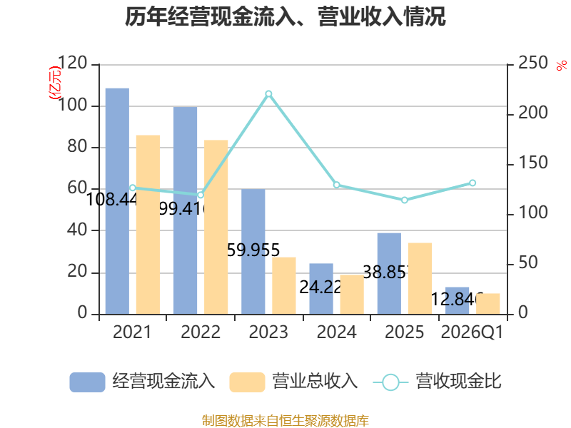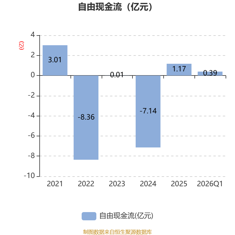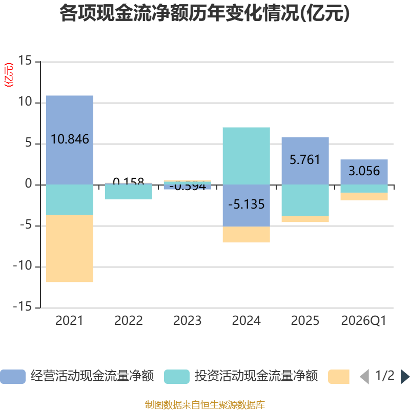 截至2026年一季度末,公司经营活动现金流净额为3.06亿元,同比增加3.47亿元;筹资活动现金流净额-9290.28万元,同比减少1.18亿元;投资活动现金流净额-9949.26万元,上年同期为932.44万元。