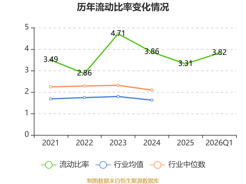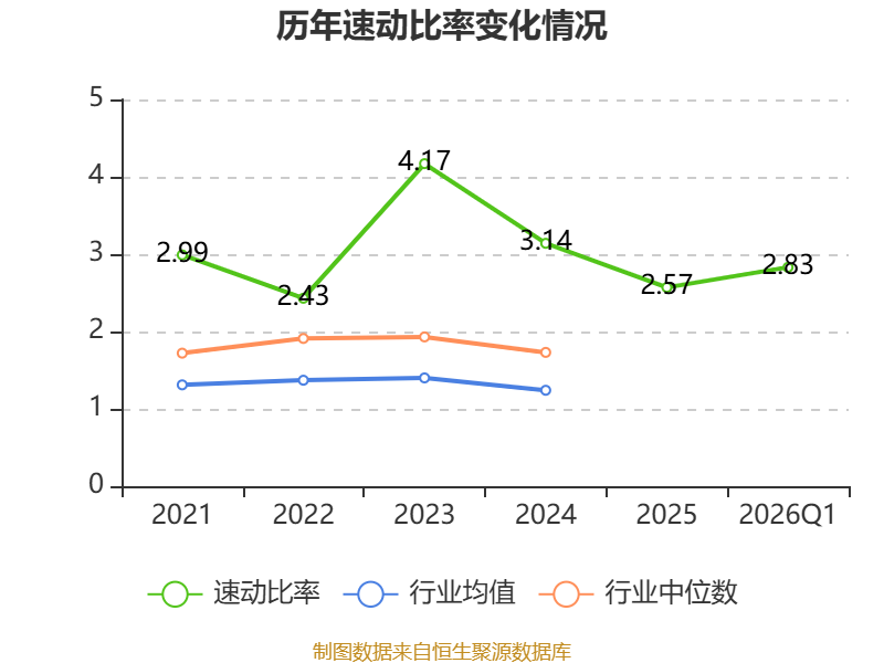 2026年第一季度,公司流动比率为3.82,速动比率为2.83。