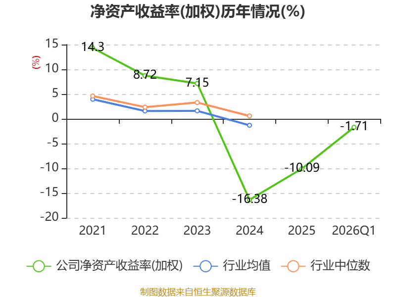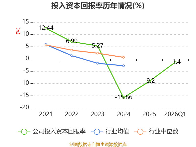 盈利能力方面, 2026年一季度公司加权平均净资产收益率为-1.71%,同比下降0.11个百分点。公司2026年第一季度投入资本回报率为-1.4%,较上年同期上升0.22个百分点。