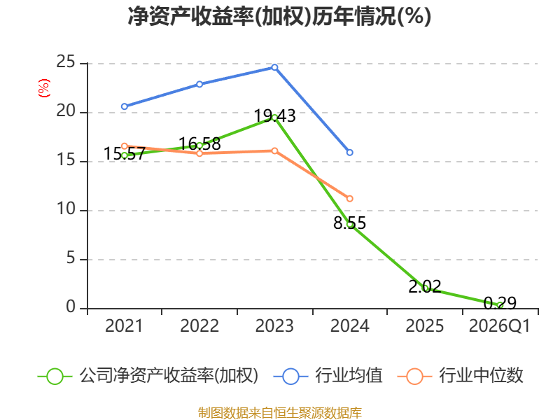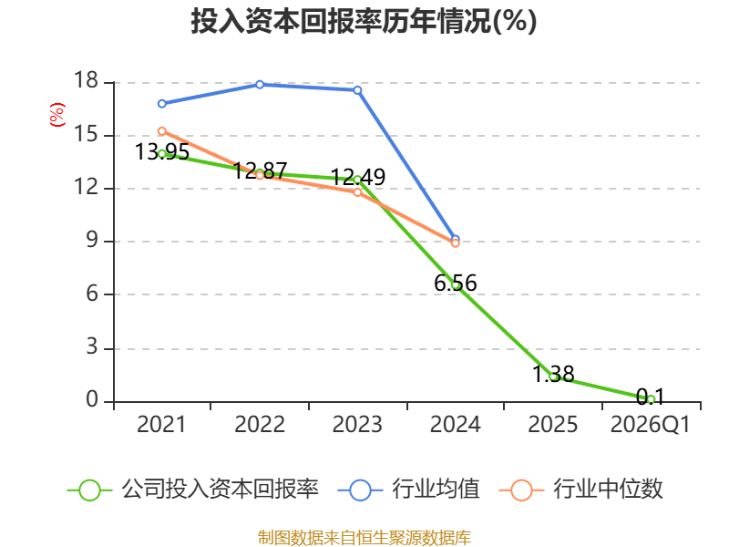 盈利能力方面, 2026年一季度公司加权平均净资产收益率为0.29%,同比下降1.59个百分点。公司2026年第一季度投入资本回报率为0.1%,较上年同期下降1.26个百分点。