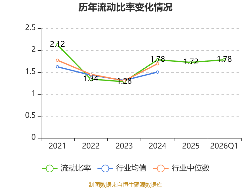 2026年第一季度,公司流动比率为1.78,速动比率为1.26。