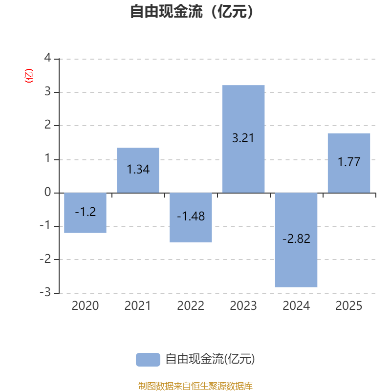 截至2025年,公司经营活动现金流净额为1.33亿元,同比下降63.92%;筹资活动现金流净额-2.86亿元,同比减少5.01亿元;投资活动现金流净额-3846.18万元,上年同期为-4.68亿元。
