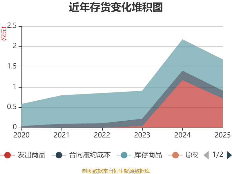 从存货变动来看,截至2025年末,公司存货账面价值为1.68亿元,占净资产的10.14%,较上年末减少4930.84万元。其中,存货跌价准备为896.23万元,计提比例为5.07%。