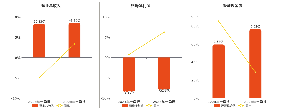 公司营业总收入为41.15亿元。归母净利润为-3.36亿元,在已披露的同业公司中排名第5。经营活动现金净流入为3.32亿元。