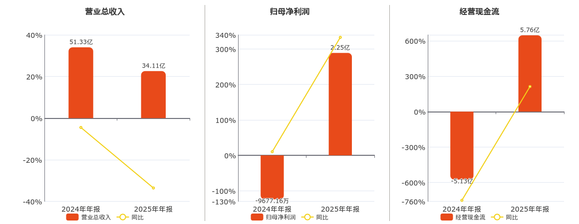 公司营业总收入为34.11亿元,在已披露的同业公司中排名第37。归母净利润为2.25亿元,在已披露的同业公司中排名第32。经营活动现金净流入为5.76亿元。