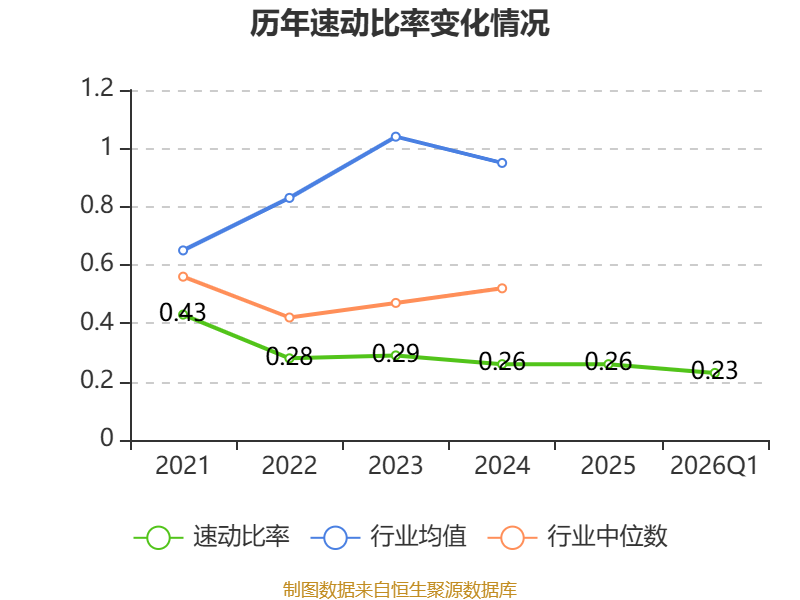 2026年第一季度,公司流动比率为0.89,速动比率为0.23。