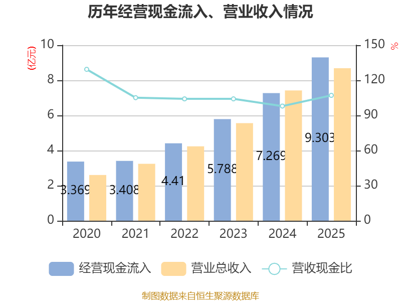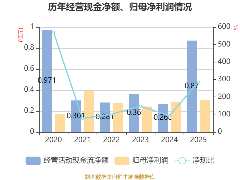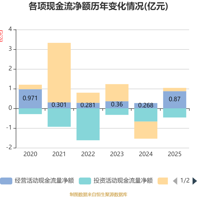 截至2025年,公司经营活动现金流净额为8700.83万元,同比增长224.9%;筹资活动现金流净额1692.86万元,同比增加1.04亿元;投资活动现金流净额-4640.25万元,上年同期为-6685.24万元。