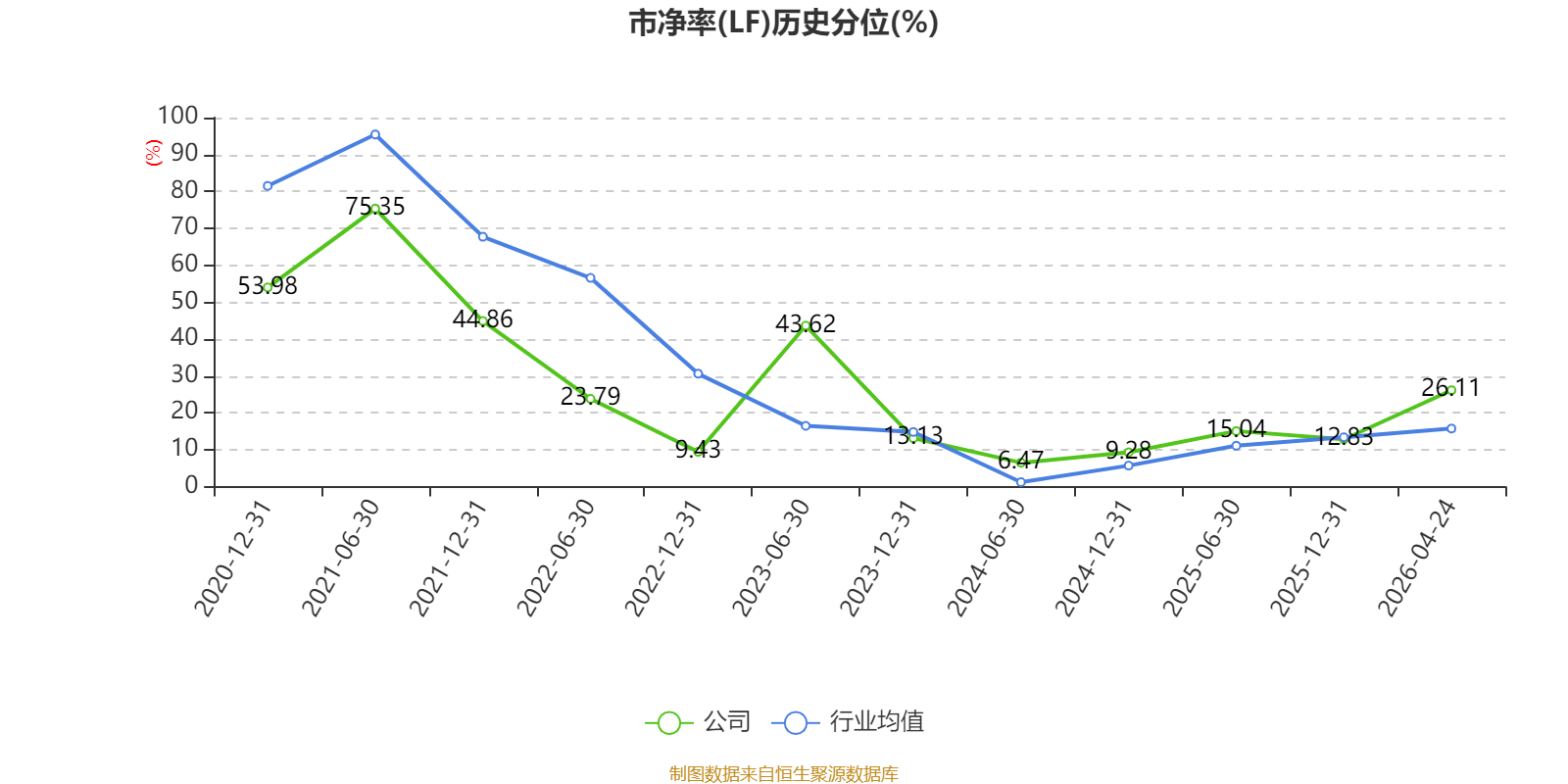 市盈率、市净率为负时,不显示当期分位数,会导致折线图中断。