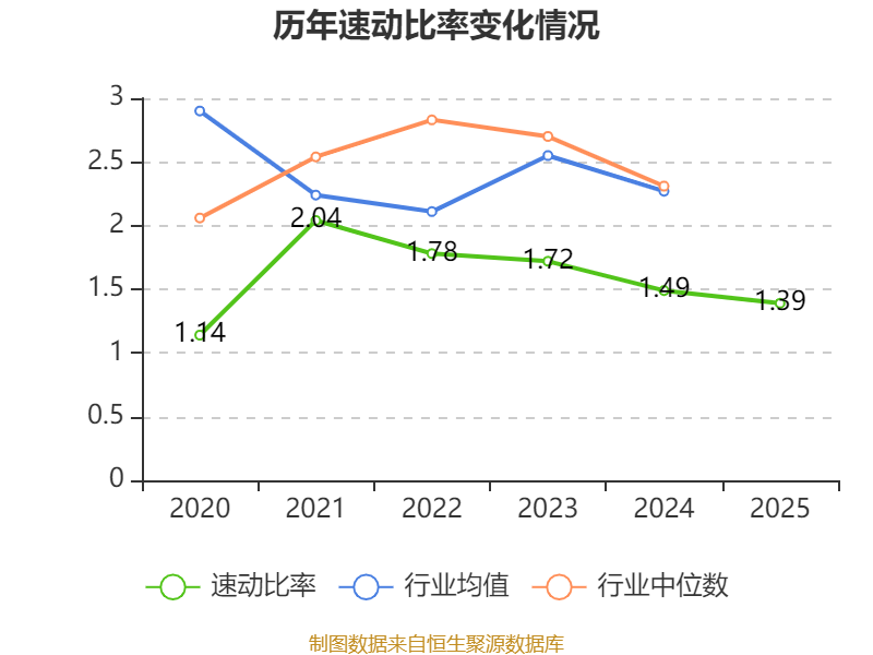 2025年,公司流动比率为1.83,速动比率为1.39。