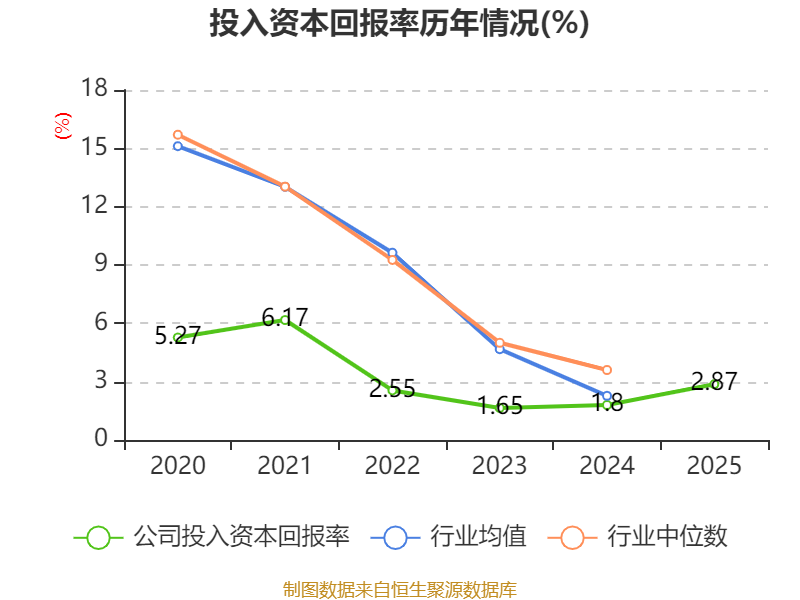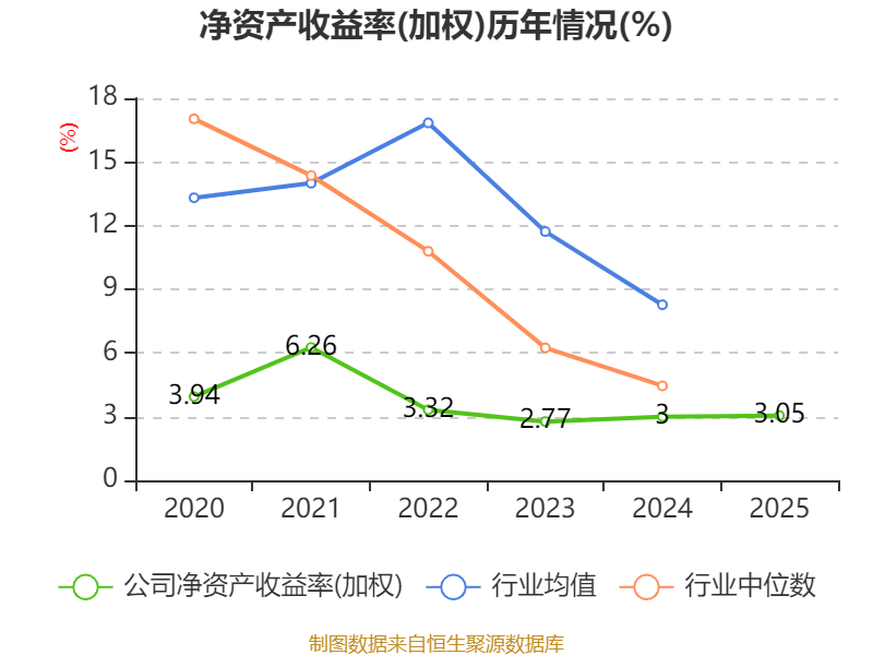 数据显示,2025年公司加权平均净资产收益率为3.05%,较上年同期上升0.05个百分点。公司2025年投入资本回报率为2.87%,较上年同期上升1.07个百分点。