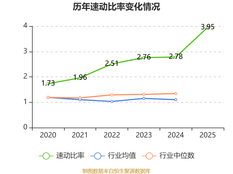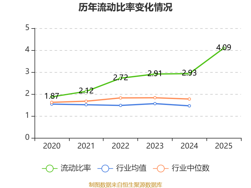 2025年,公司流动比率为4.09,速动比率为3.95。