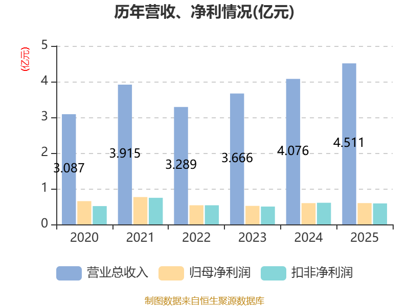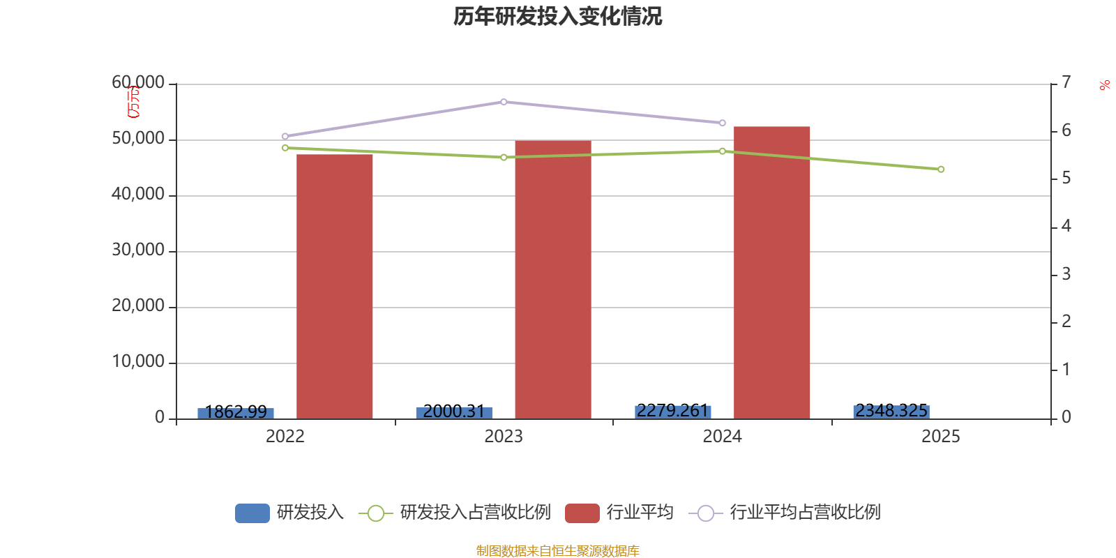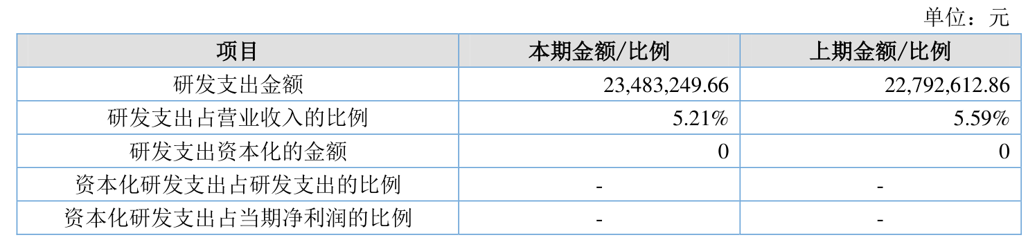 2025年全年,公司研发投入金额为2348.32万元,同比增长3.03%;研发投入占营业收入比例为5.21%,相比上年同期下降0.38个百分点。此外,公司全年研发投入资本化率为0%。
