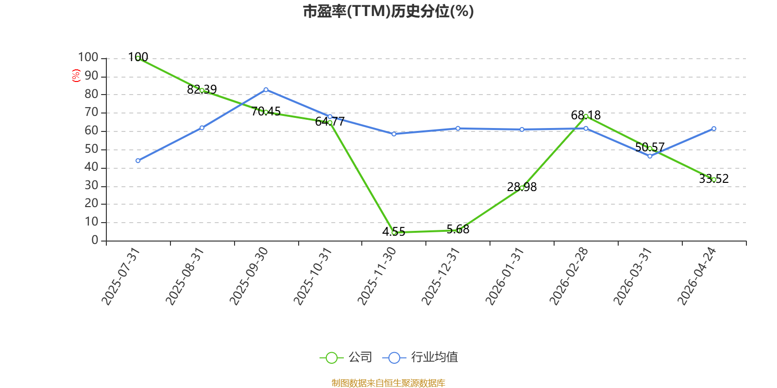 市盈率、市净率为负时,不显示当期分位数,会导致折线图中断。