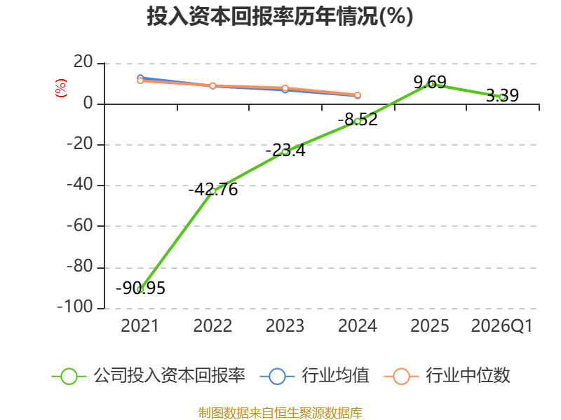 盈利能力方面, 2026年一季度公司加权平均净资产收益率为3.13%,同比上升0.22个百分点。公司2026年第一季度投入资本回报率为3.39%,较上年同期上升0.86个百分点。