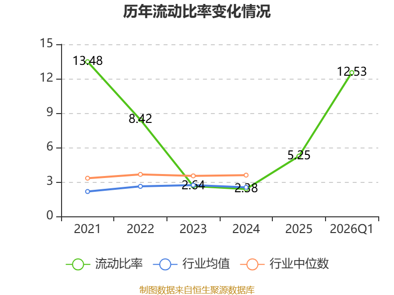 2026年第一季度,公司流动比率为12.53,速动比率为11.65。