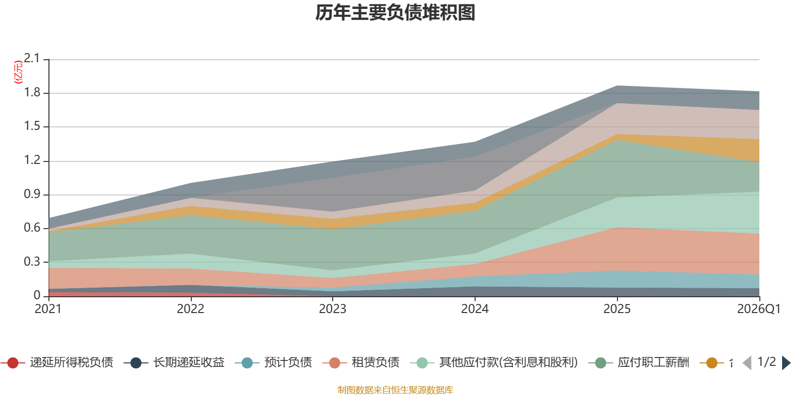 负债重大变化方面,截至2026年一季度末,公司应付职工薪酬较上年末减少48.18%,占公司总资产比重下降3.98个百分点;租赁负债较上年末减少5.5%,占公司总资产比重下降2.13个百分点;应付票据及应付账款较上年末减少5.56%,占公司总资产比重下降1.53个百分点;预计负债较上年末减少20.21%,占公司总资产比重下降0.97个百分点。