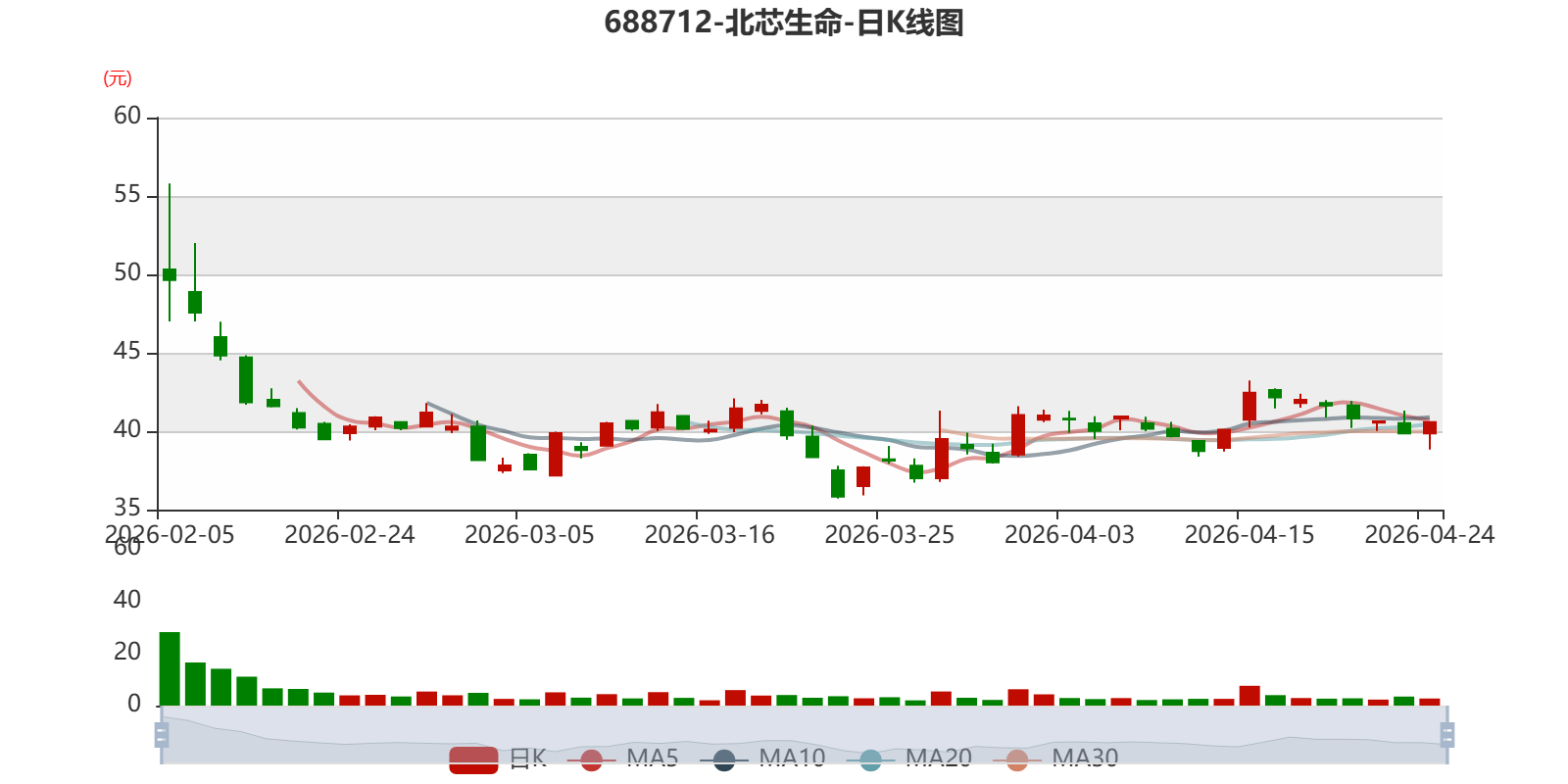 中证智能财讯北芯生命(688712)4月25日披露2026年第一季度报告。公司实现营业总收入1.85亿元,同比增长45.36%;归母净利润4571.09万元,同比增长121.83%;扣非净利润4285.37万元,同比增长161.54%;经营活动产生的现金流量净额为7247.28万元,同比增长94.18%;报告期内,北芯生命基本每股收益为0.11元,加权平均净资产收益率为3.13%。