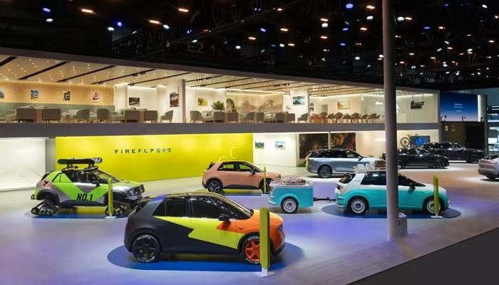 这类样本在本届车展并未消失,只是被过于强盛的主叙事压低了声量。在ES9这类走量大车之外,蔚来旗下萤火虫带来的三款设计改装作品,占据了展台的另一处注意力中心。涂装、拖挂,乃至更明显偏向生活方式的外部表达,都被摆到了展台中央。