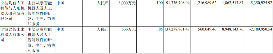 这两家主要从事智能机器人生产、销售和服务的公司,期末总资产合计达到2.29亿元,净资产合计为-65.69万元。这意味着,上述两家公司可能已经完成重资产的投入,而资金完全依赖于母公司的资本金注入和借款。