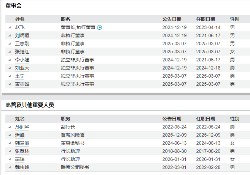 年报显示,2025 年郑州银行董高变动频繁,多名董高离任。其中,2025年1月刚正式履职的行长李红,上任仅一年有余便在2026年2月官宣离任。