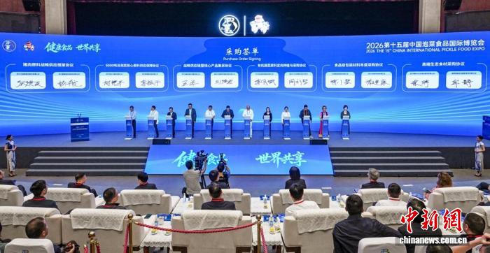 中新网眉山4月25日电 (记者刘忠俊)4月25日,2026第十五届中国泡菜食品国际博览会(以下简称“泡博会”)在四川省眉山市开幕。来自国内外的8700余位嘉宾齐聚一堂,共话食品产业创新、共促经贸交流合作、共推美食文化交融。本届泡博会为期3天,持续至4月27日。