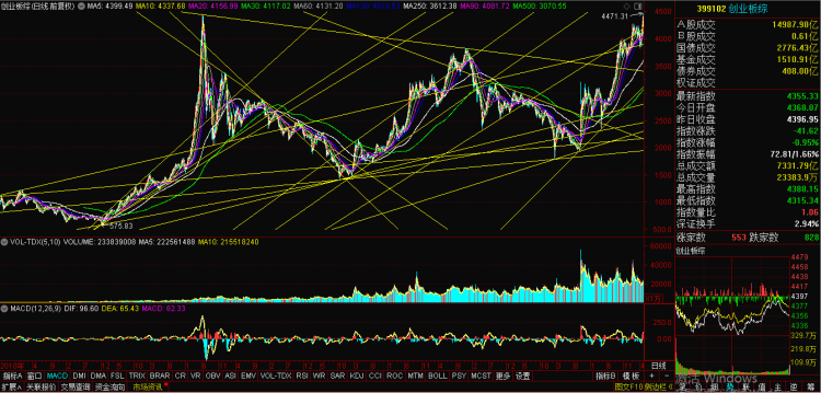 本周A股市场,“创业板综指”(创业板综,399102)颇受关注,4月22日一举突破了2015年6月3日4449.42点牛市峰顶。不过,该指数在新高之上仅仅守住了43分钟,在之后的2天,更是出现急跌,至24日最低4315.34点,相比最高4471.31点下跌了3.49%。